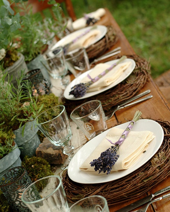 Niedługo przed nami wielka uroczystość. Pod koniec sierpnia będę organizować w ogrodzie Chrzciny syna. Dlatego na blogu pojawiać się będą wpisy takie jak ten. Organizacja Chrzcin w ogrodzie to zadanie niełatwe. Przyjęcie na świeżym powietrzu jest zdecydowanie mniej oficjalne a trzeba mu nadać taką formę, aby urosło do rangi wielkiego wydarzenia. Najpierw trzeba pomyśleć nad dekoracją stołu a potem czeka mnie zadanie trudniejsze. Dobór menu do okazji i jednocześnie miejsca. Powiedzcie czy łatwe jest skomponowanie menu, które ma być połączeniem dań na piknik, grilla i elegancką uroczystość? Z dekoracją w ogrodzie też nie jest prosto. Jesteśmy narażeni na żywioł natury. Położymy piękne serwetki – zwieje je nam wiatr, deszcz może zmoczyć naszą piękną zastawę stołową i biały obrus. Dlatego w wyszukiwaniu inspiracji skłaniam się bardziej w stronę natury. Stoły ozdobione są polnym kwiatami, mchem, wrzosami, szyszkami czyli tym co je otacza.