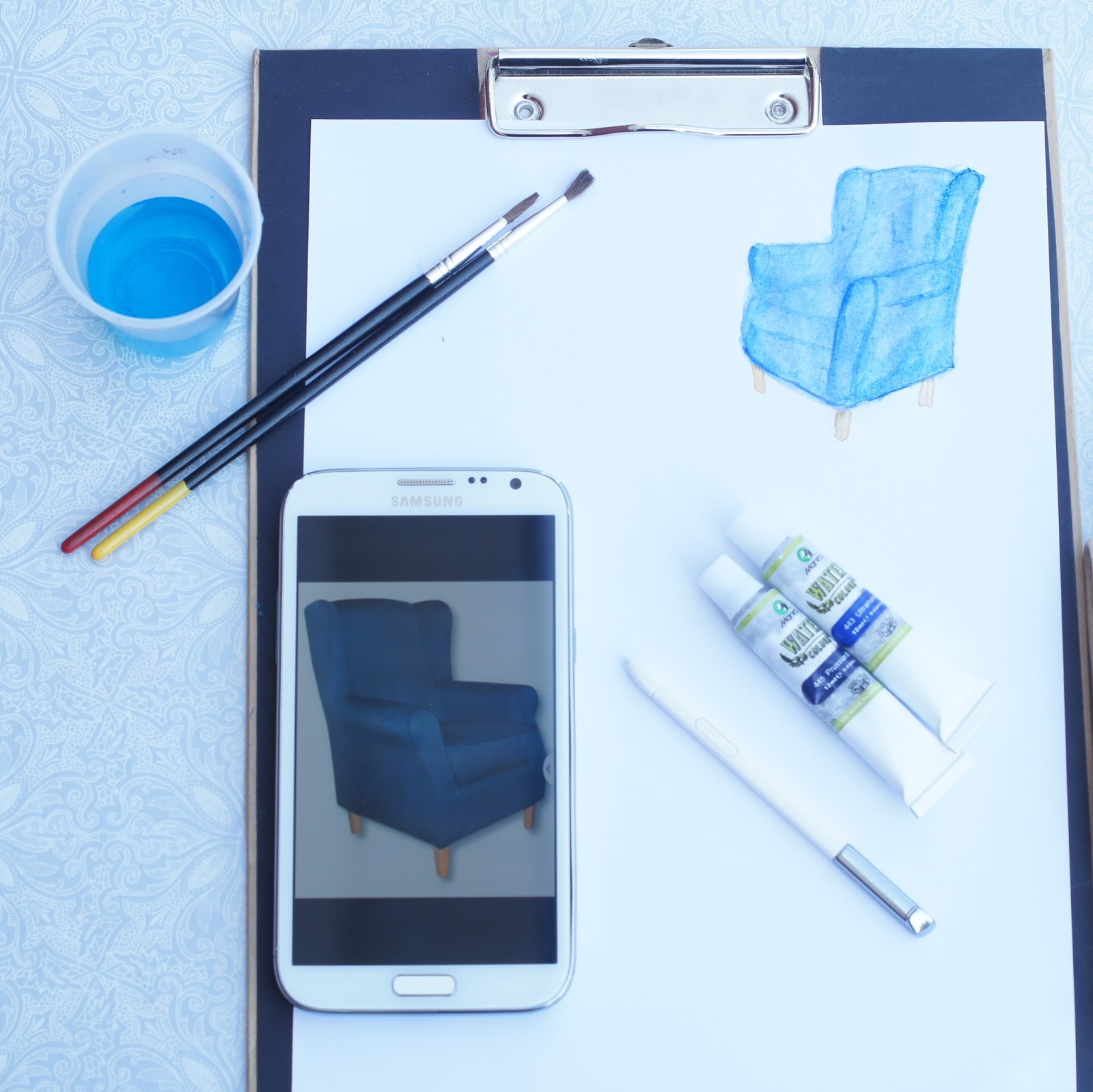 Byłam przekonana w 100% do granatowego fotela, ale w momencie, gdy projekt się zmieniał pomyślałam, że taki żółty fotel może ożywić wnętrze: