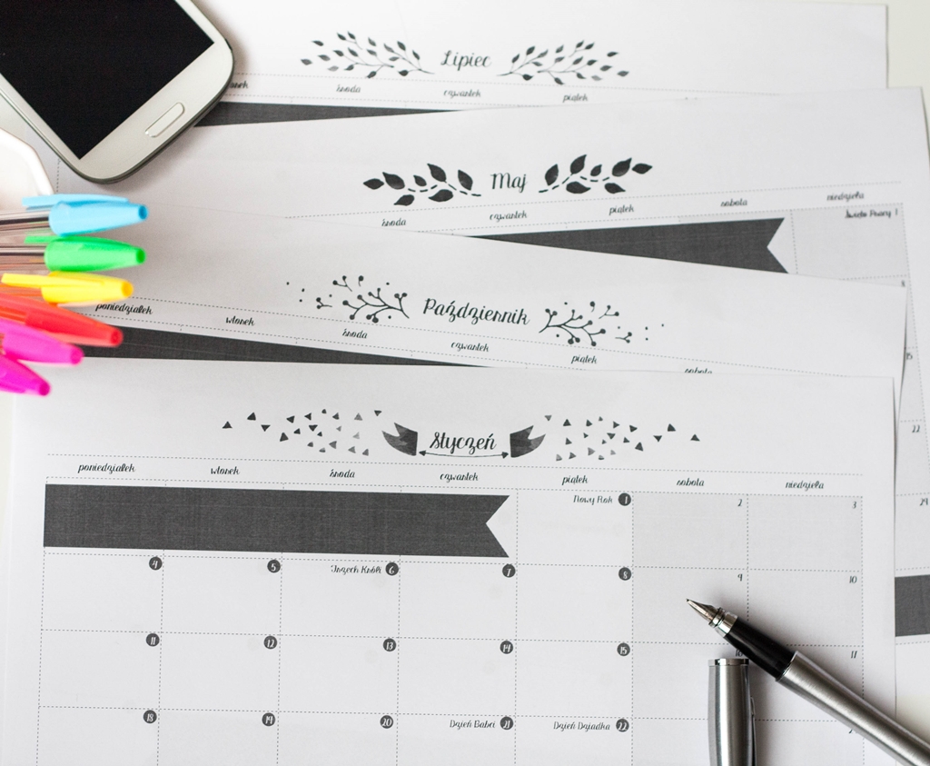 Aż trzy kalendarze przygotowała Maria z bloga Make my place. Do wyboru, do koloru: