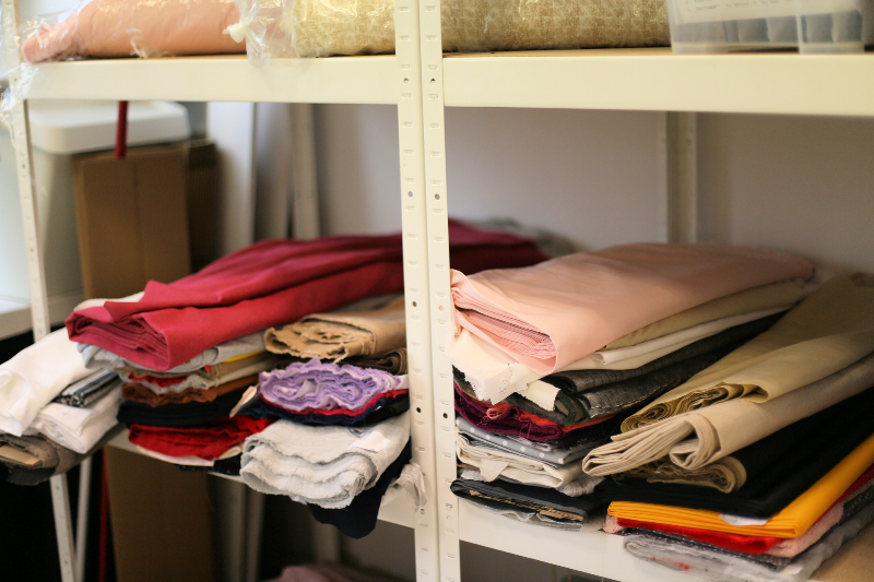 Kiedy zakładki są już upięte zszywamy materiał: