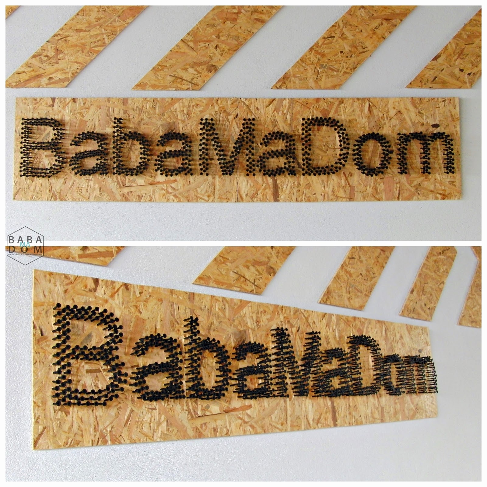 Inny pomysł, na spersonalizowanie stanowiska pracy pokazała Dorota z bloga Baba ma dom. Pamiętam, jakie wrażenie zrobił na mnie napis z tysiąca wkrętów. Tak tysiąca! Już wyobrażam sobie jak Dorota wkręcała, wkręcał, wkręcała. Efekt wart był zapamiętania i stąd wracam do niego po prawie roku. Zobaczcie jak Dorota dzielnie walczyła (klik)