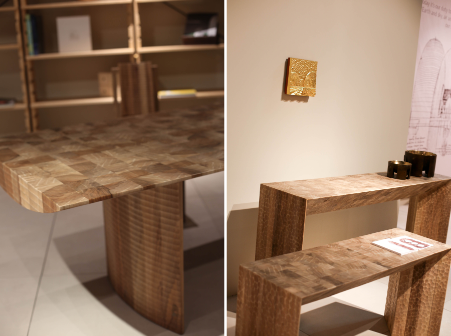 Na obrazku po prawej fragment wystawy Inside Wood. W ten sposób potraktowane drewno również może być dekoracją.
