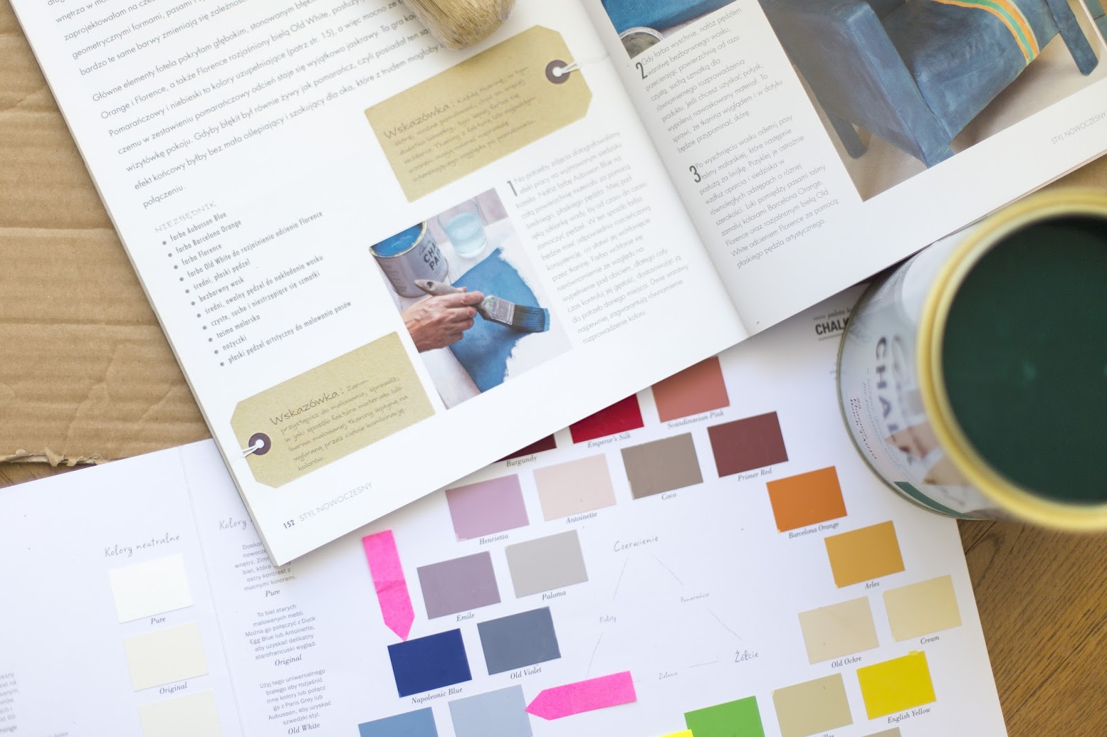 Uznałam, że najlepiej się do tego nadadzą farby Annie Sloan. To taki przyjaciel do zadań specjalnych i nietypowych realizacji. W końcu na szkoleniu, w którym uczestniczyłam, Annie pokazywała nam jak maluje po tkaninach. Tylko, że były to lniane serwetki a nie welur i eko skóra.